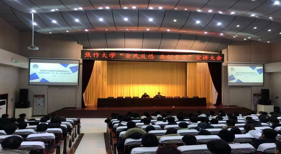 宣讲大会由球王会平台处长田庆伟主持,焦作市公安局反恐工作支队政委李欣宁主讲,整个宣讲大会进行了2个半小时,李欣宁政委主要从当前我们国家面临的反恐形势、什么是恐怖主义、我国各种宗教的起源及现状、边疆问题、怎样识别和防范恐怖主义行为等方面为大家详细介绍了当前校园反恐的主要内容。宣讲会上气氛活跃,李政委和大家的互动也赢得了在座同学们的阵阵掌声,这次宣讲不仅给大家上了一堂安全课,也让大家学习到了历史知识,拓宽了视野,使同学们对各种恐怖活动本质有了更深刻的认识,提高了自我保护能力,得到了师生们的普遍认可。